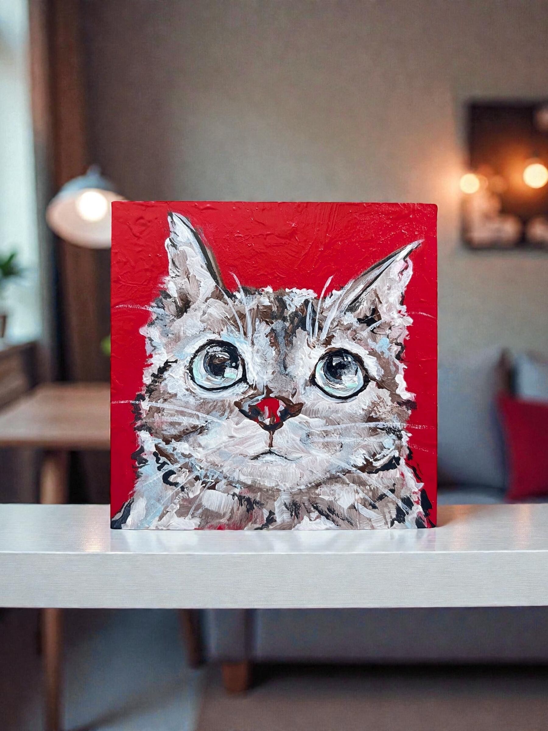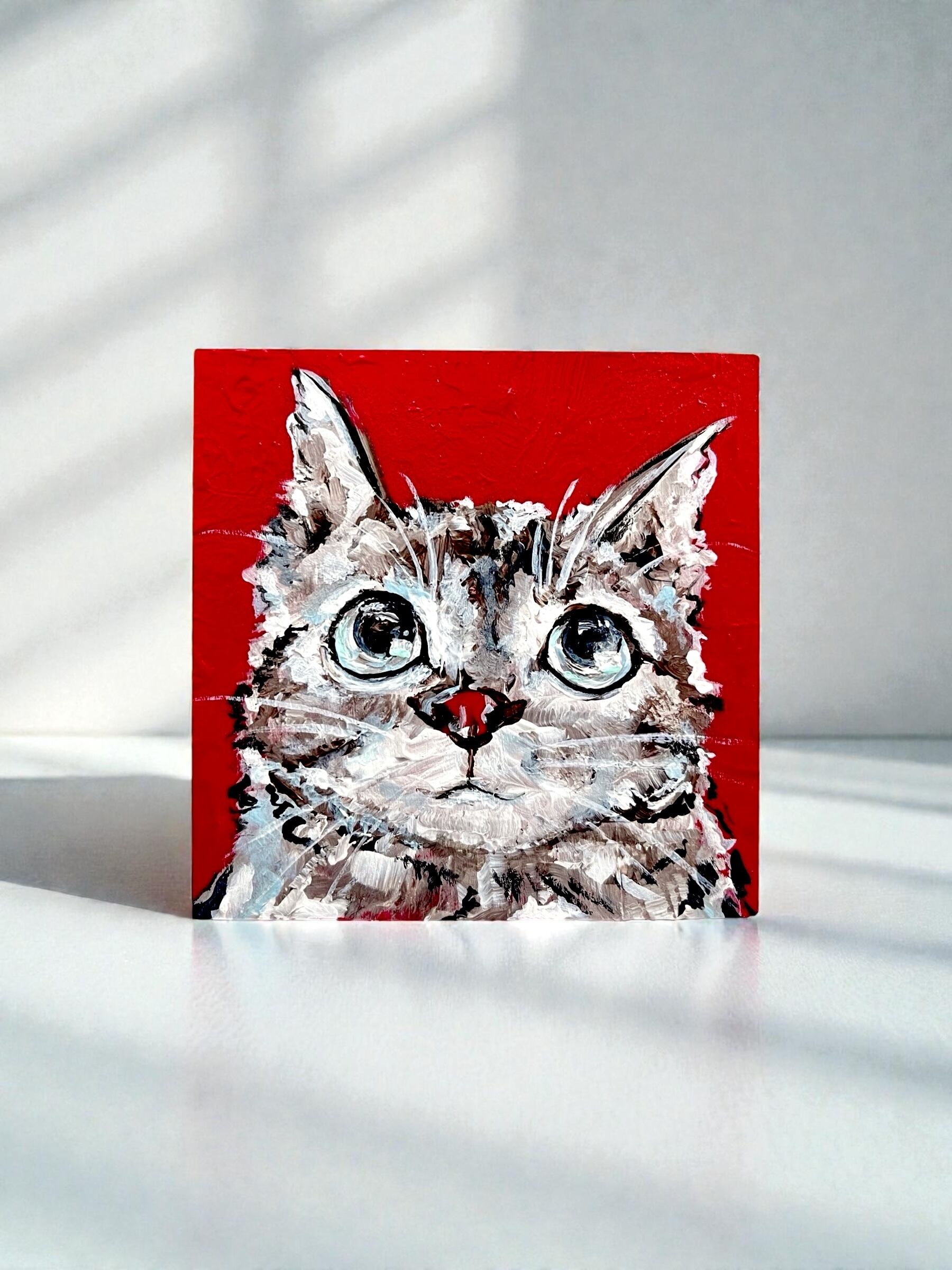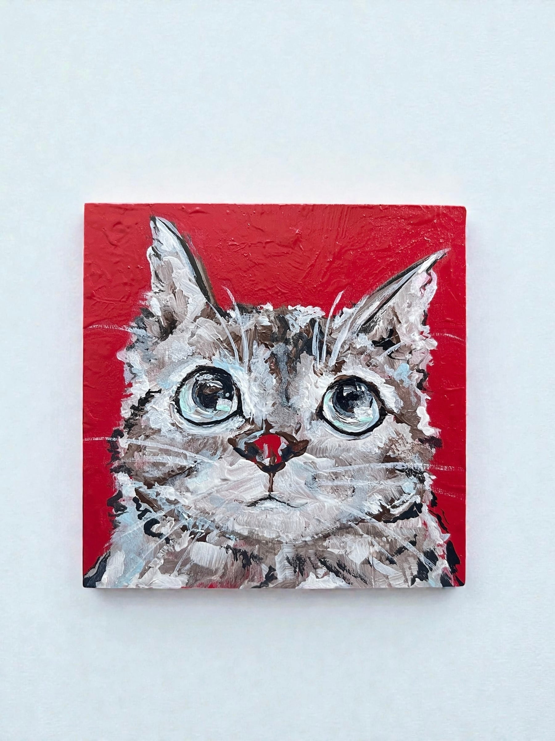 原画 "ミャオ 02 - Meow 02" MINI WOOD PANEL 10㎝×10㎝